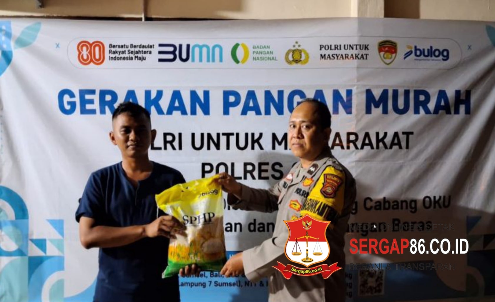 Baturaja, Sergap86.co.id – Polsek Sosoh Buay Rayap, Kabupaten Ogan Komering Ulu (OKU), menerima bantuan beras dalam rangka program Gerakan Pangan Murah Polri untuk masyarakat. Kegiatan berlangsung pada Selasa (16/9/2025) sekitar pukul 18.20 WIB di halaman Mapolsek Sosoh Buay Rayap.