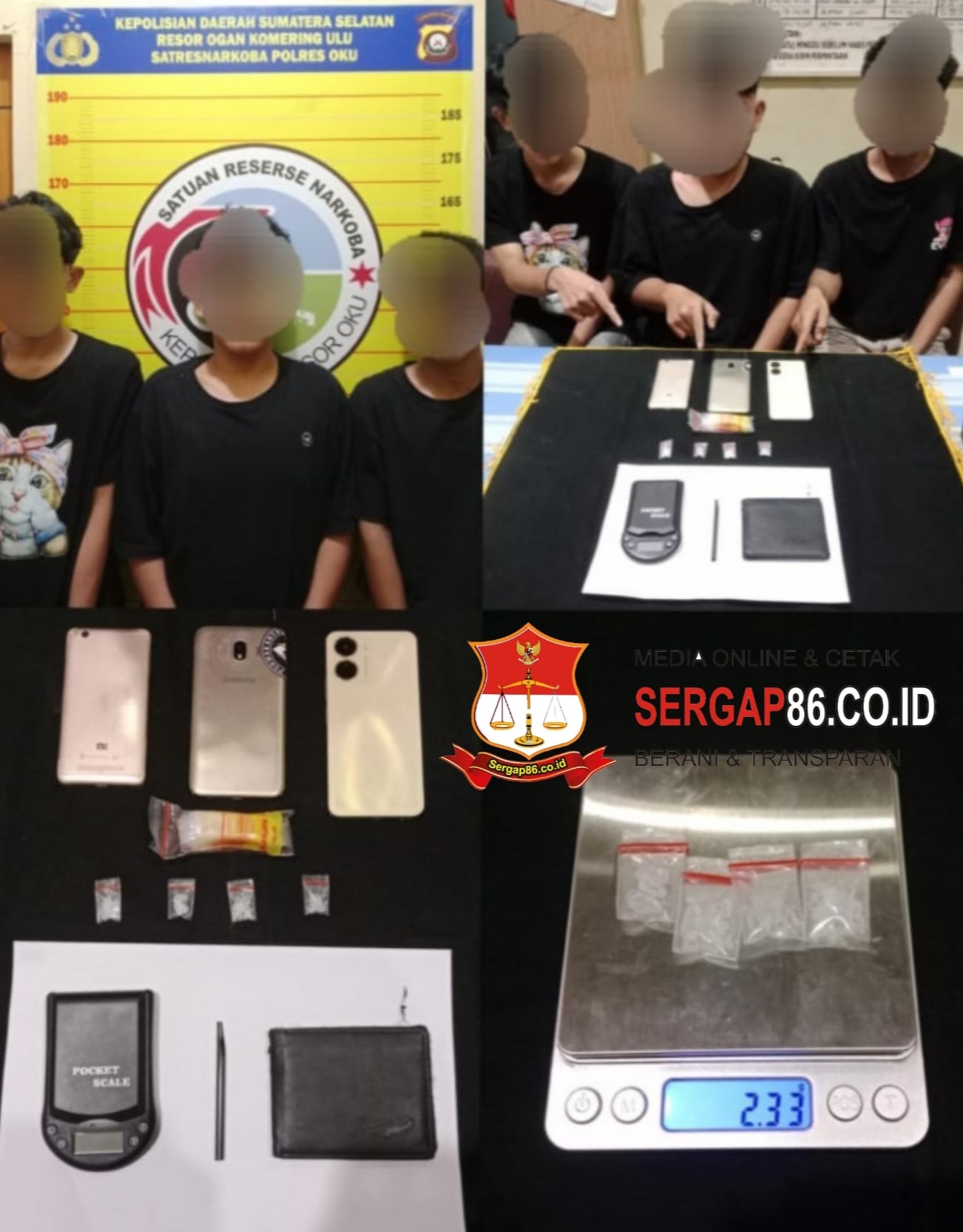 Baturaja,sergap86.co.id – Satuan Reserse Narkoba (Satresnarkoba) Polres Ogan Komering Ulu (OKU) kembali menunjukkan keseriusannya dalam memberantas peredaran narkotika. Tiga pemuda yang masih berstatus pelajar/mahasiswa diamankan petugas karena diduga terlibat dalam tindak pidana peredaran narkotika jenis sabu.